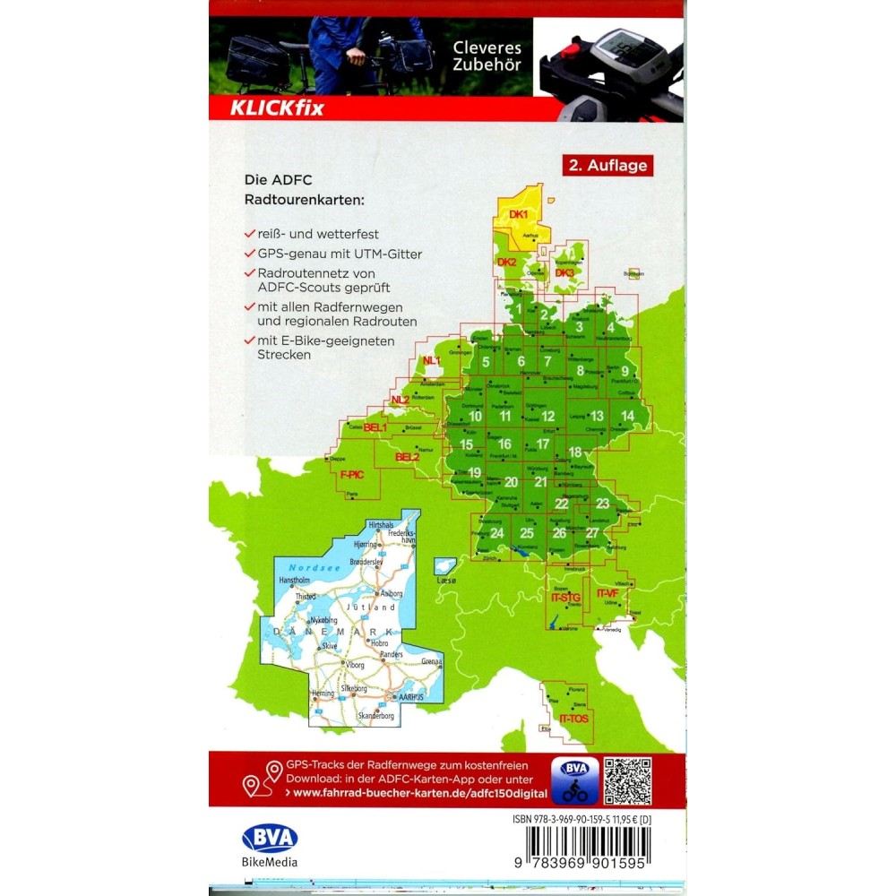 Detaljerad cykelkarta över ett område på 130 x 160 km. Innehåller cykelleder, boenden (Bed & Bike), sevärdheter och fritidsinformation.