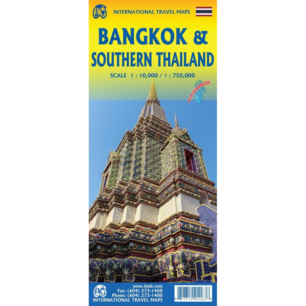 Turistkarta i skala 1:10 000(Bangkok) / 1: 750 000(Södra Thailand) från International Travel Maps (ITM).