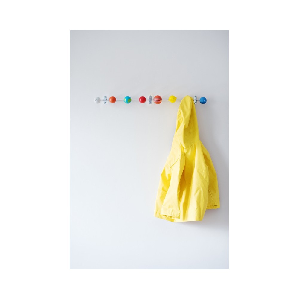Läcker klädhängare i metall med åtta planeter i trä!