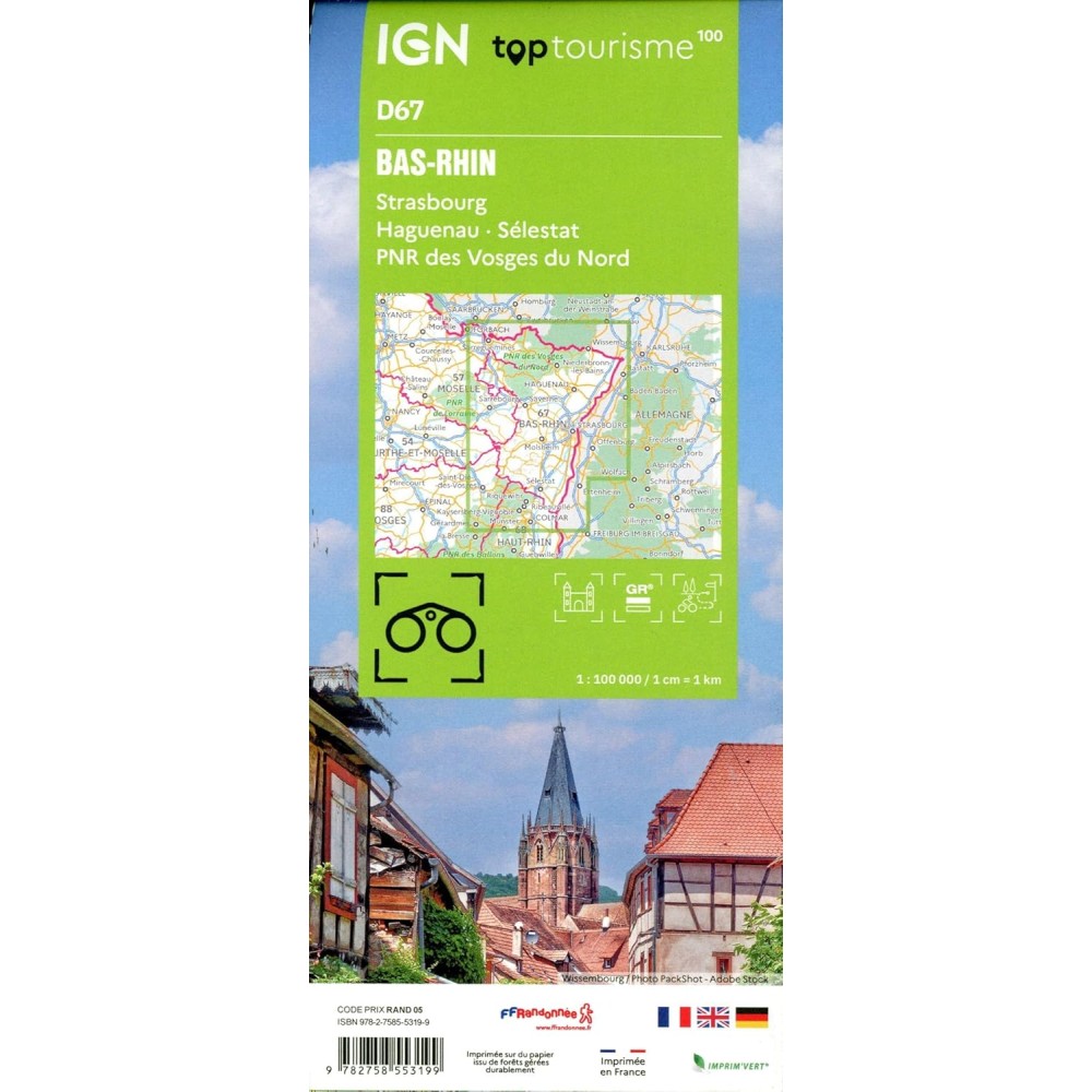IGN TOP 100 - skala 1:100 000 - Bas-Rhin - Strasbourg Haguenau Sélestat PNR Vosges Nord