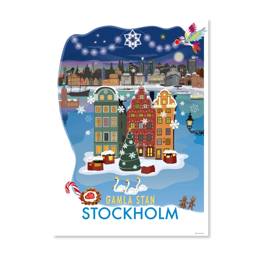 Digital illustration av Lottisson Design med motiv över Gamla Stan