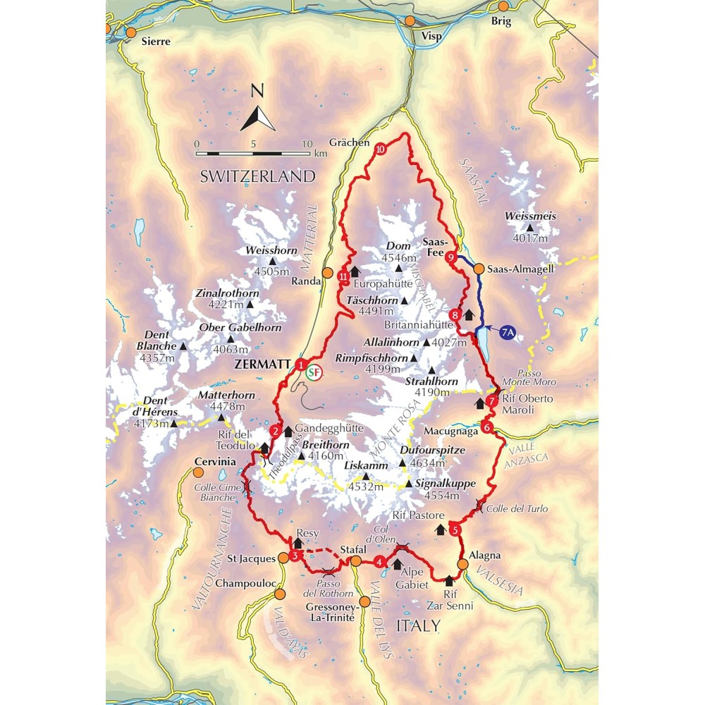 The Tour of Monte Rosa (TMR) is a high-alpine alternative to the Tour du Mont Blanc, a challenging circular trek through the Swiss and Italian Alps that spans approximately 174km (108miles). Typically completed in 10–11 days, the route features daily ascents and descents averaging 1,000m and walking times of up to 7 hours 30 minutes (excluding breaks), with unavoidable back-to-back, long, and technical days. Optional glacier crossings add a thrilling alpine dimension, making this a trek for experienced walkers seeking both challenge and adventure.