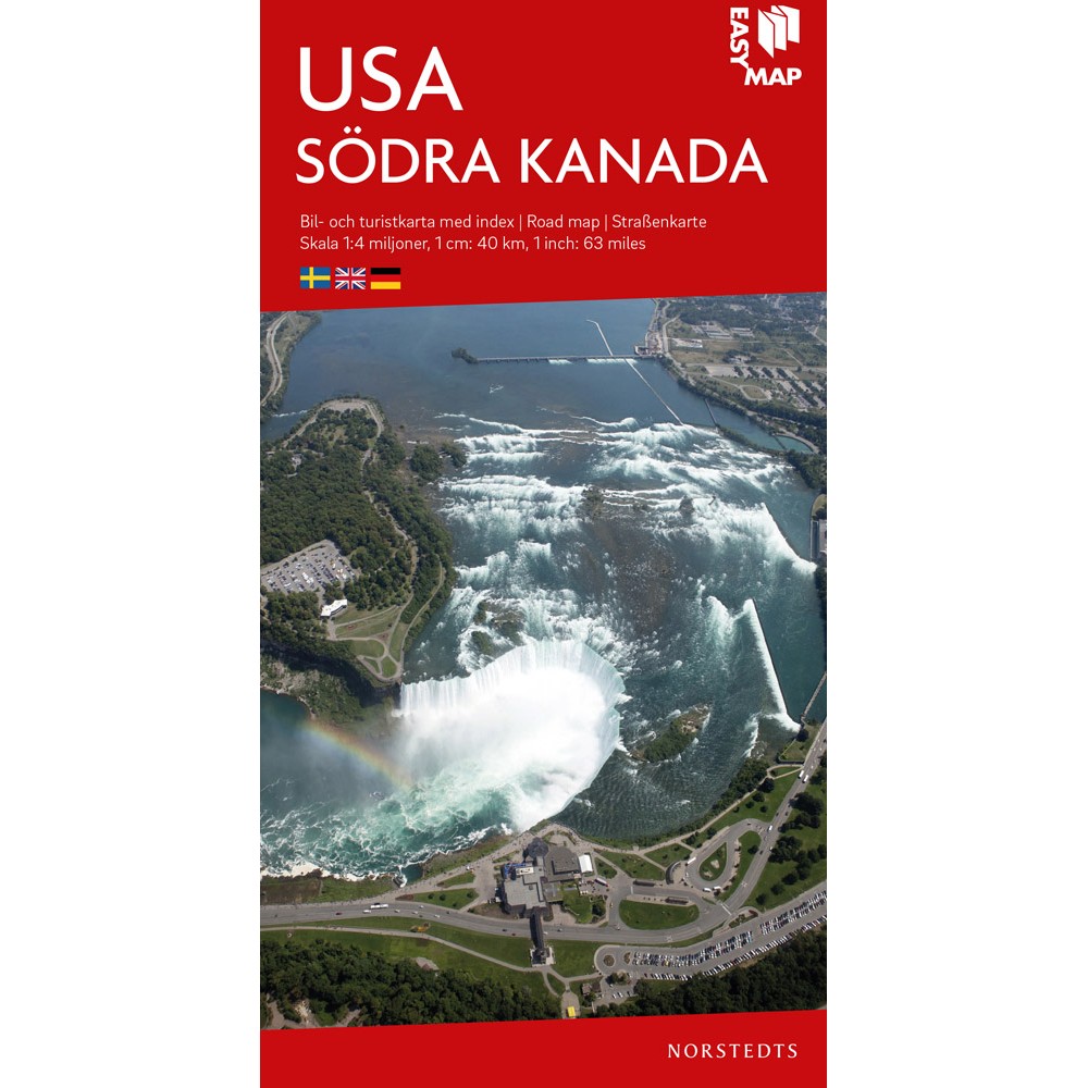 Bil- och turistkarta över USA och södra Kanada i skala 1:4 000 000.