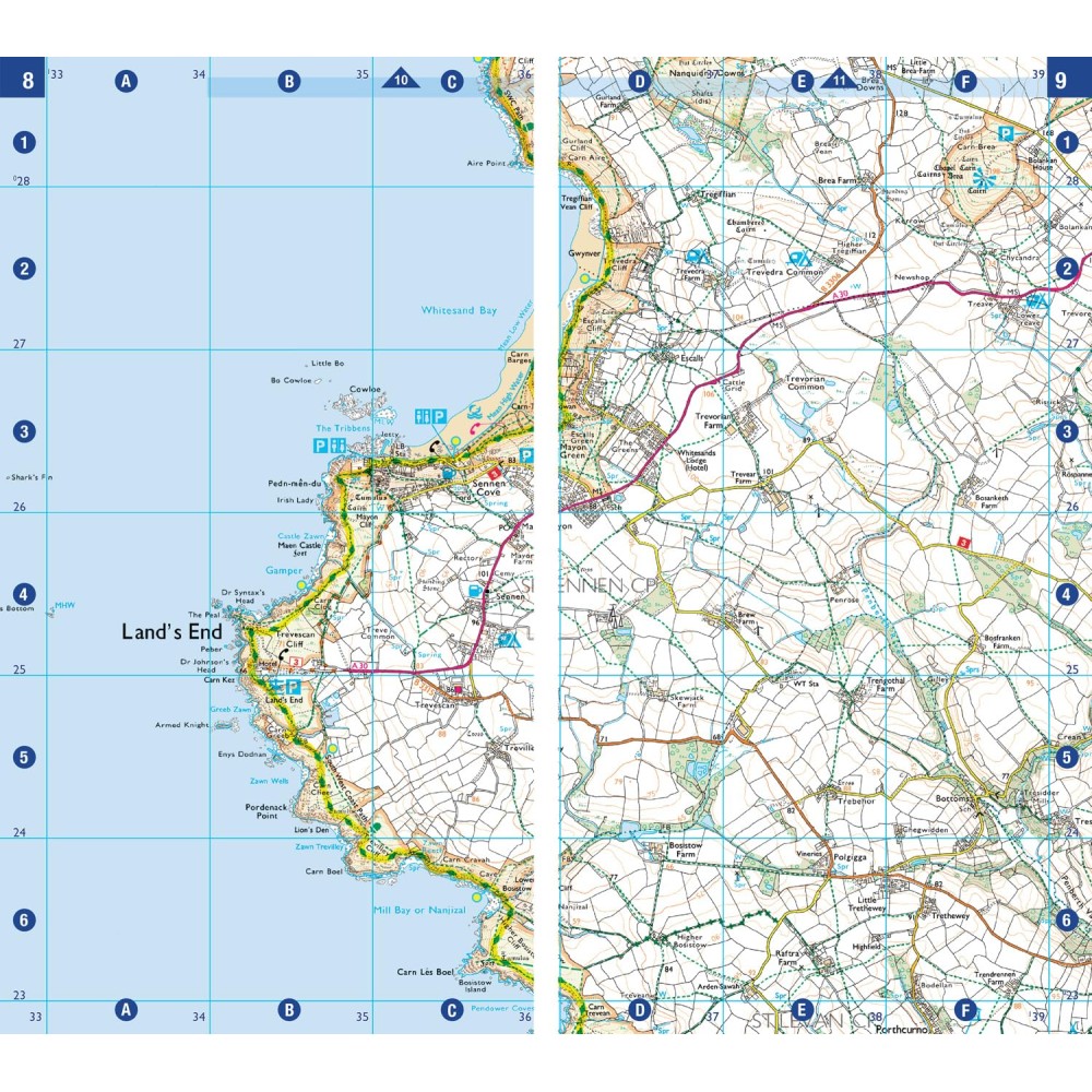 This A-Z Adventure Atlas of the South West Coast Path: North Cornwall features 41 pages of continuous Ordnance Survey mapping covering the route from Devon/Cornwall border to Land's End. The trail is easy to follow, highlighted in yellow to stand out from other footpaths, with mileage markers to gauge distances when planning your own sections of the walk to enjoy.