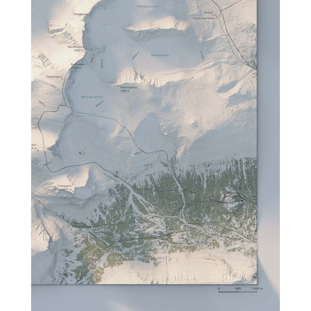 Kebnekaise - Natur 40×50 cm – Mapbits Fjällkarta