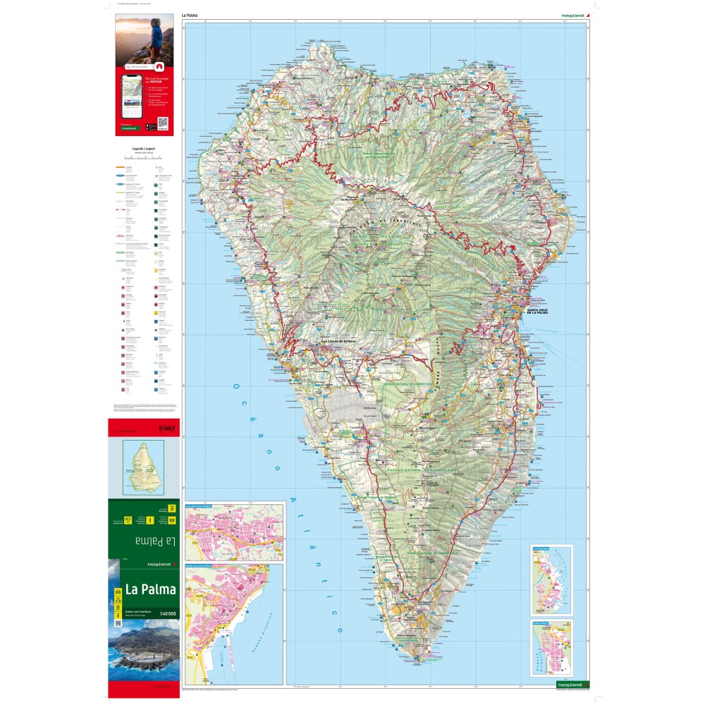 Vikt karta som bland annat visar olika typer av vägar, vägnummer, avstånd, vandringsleder samt ett urval sevärdheter, hotell och campingplatser.