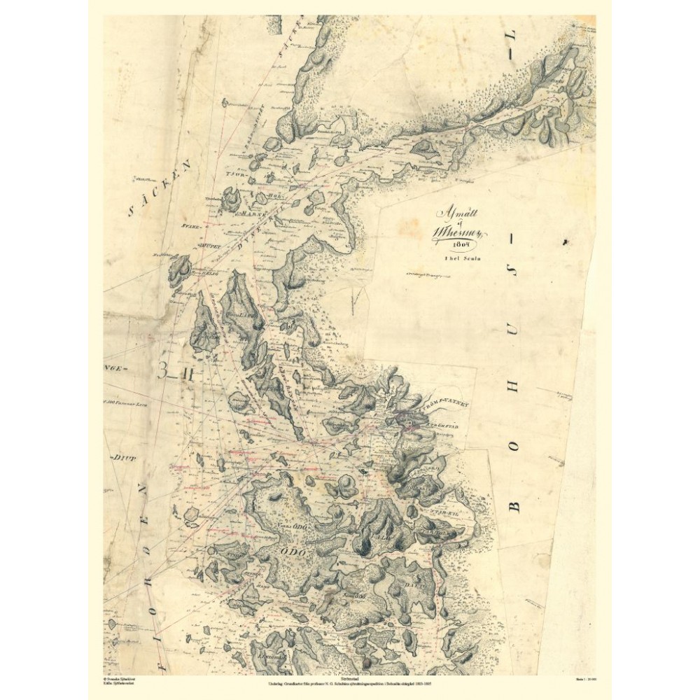 Historiskt sjökort från Svenska Sjöarkivet över Strömstad från 1803-1805.