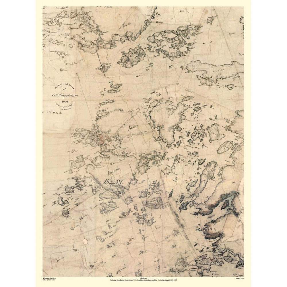 Historiskt sjökort från Svenska Sjöarkivet över Marstrand från 1803-1805.