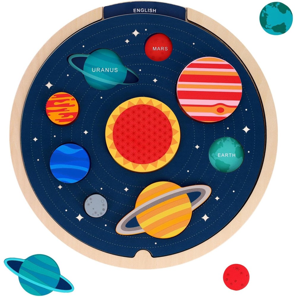 Träpussel Solsystemet – Flerspråkigt & Lärorikt Från Petit Collage