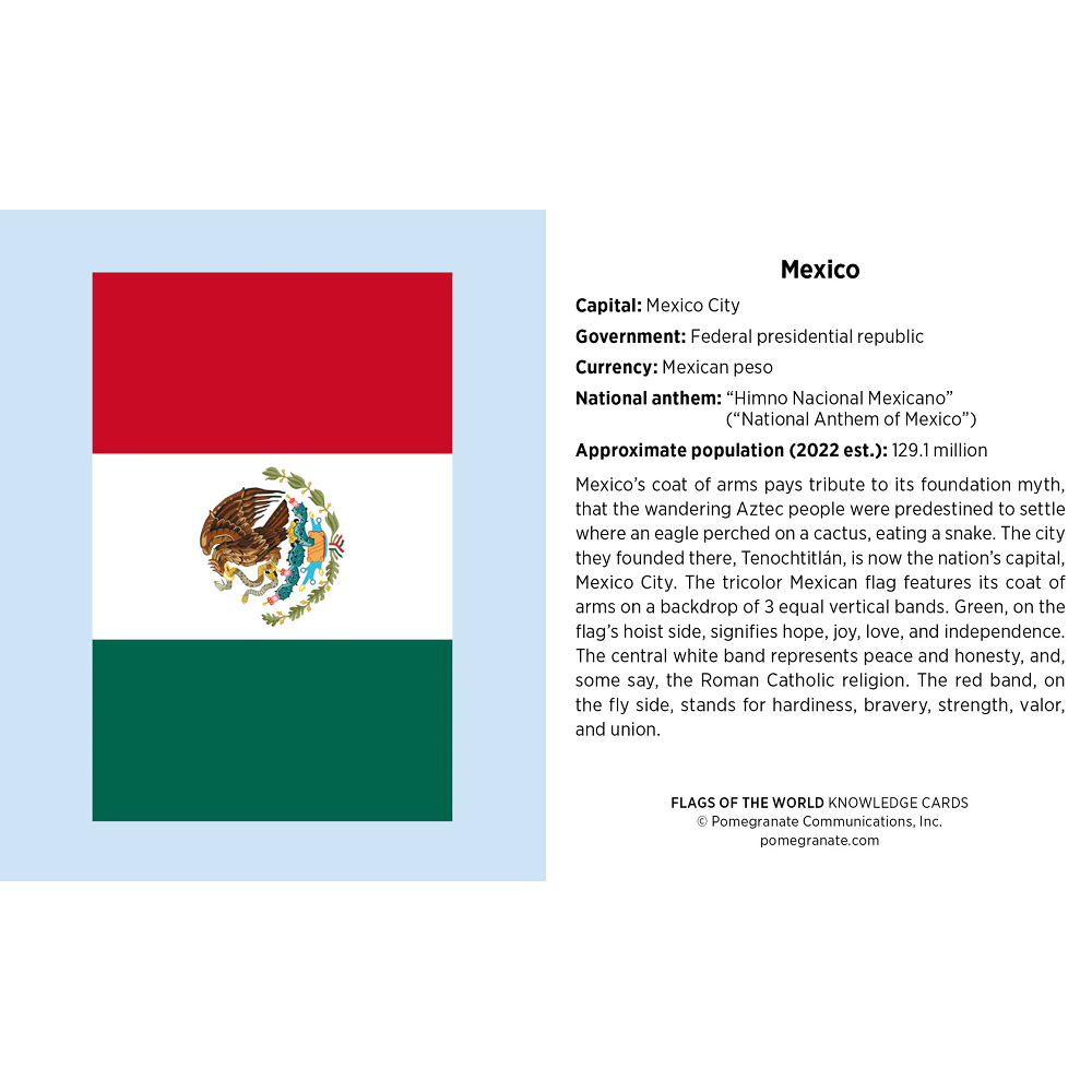 Which national flag includes an image of a vicuña (cousin to the llama)? Which displays a blue chakra wheel? The Eagle of Saladin? Featuring flags from 6 continents (sorry, Antarctica!), the 48 cards in this quiz deck provide individual flag images on the card fronts and profile the countries they fly over on the backs. Each card gives information about the history and symbolism behind the colors, coats of arms, and other national emblems (yes, even the vicuña). You’ll find loads of other facts such as each nation’s capital city, system of government, currency, national anthem, and approximate population. Perfect for independent learning or as a multiplayer game among friends, this deck of Knowledge Cards will spark your interest in vexillology—the study of flags