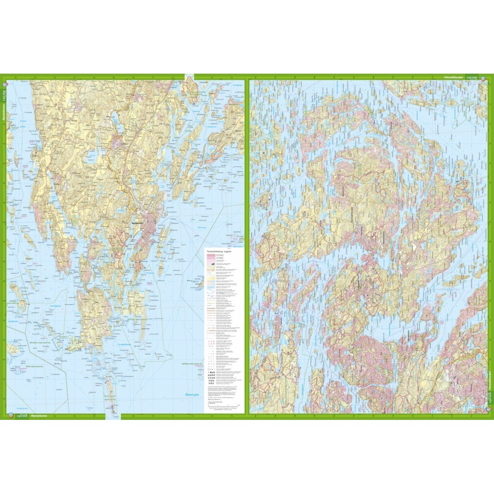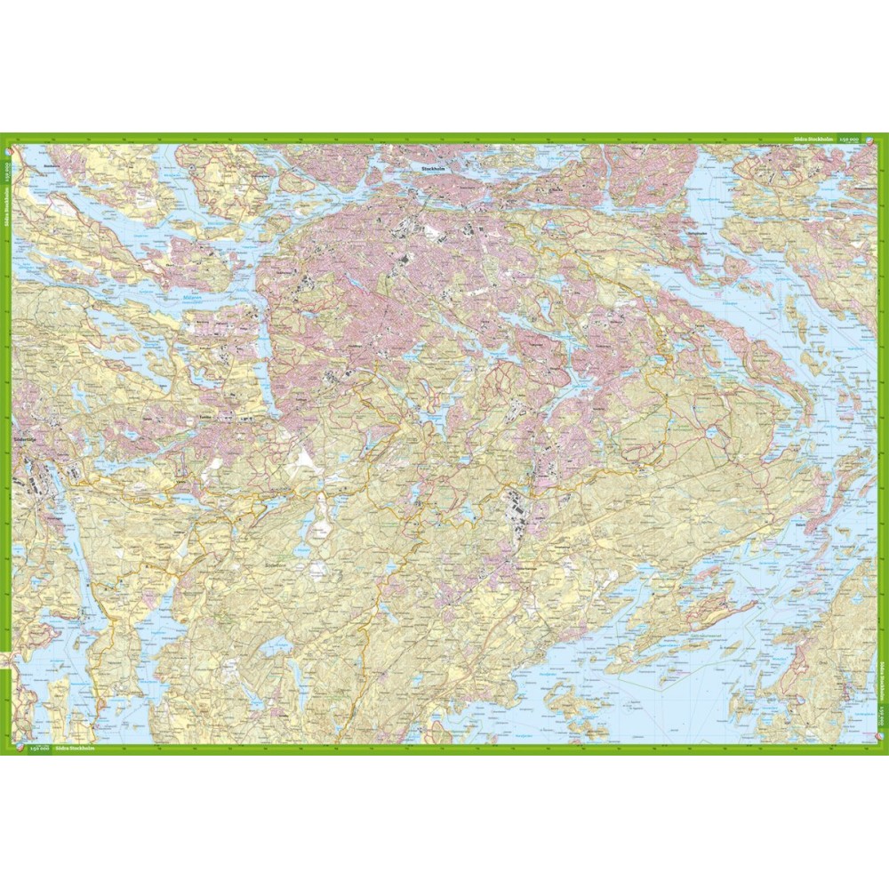 Det södra kartbladet täcker hela området söder om Stockholm och Södertörn, samt hela Värmdölandet, de inre delarna av skärgården och Tyresta nationalpark. Det passar utmärkt för vandring, cykling, svampplockning och skridskoåkning.