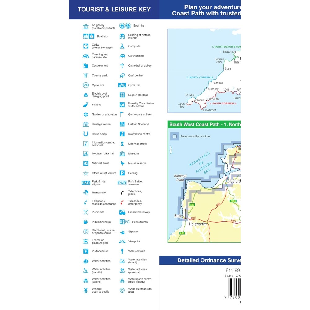 This guide to the North Devon and Somerset section features 36 pages of continuous Ordnance Survey mapping and covers the South West Coast Path from Minehead to Bude. This atlas includes a route planner providing the distances between places and the amenities available, featuring: