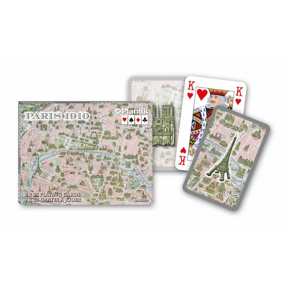 Denna exklusiva kortslek från Piatnik pryds av en detaljrik karta över Paris från 1910. Setet innehåller två 55-kortslekar med eleganta baksidor – en med Notre-Dame och en med Eiffeltornet – som gör det enkelt att skilja dem åt. Med förstklassig kvalitet och omsorgsfullt utformad grafik är detta den perfekta kortleken för dig som vill kombinera spelglädje med tidlös stil.
