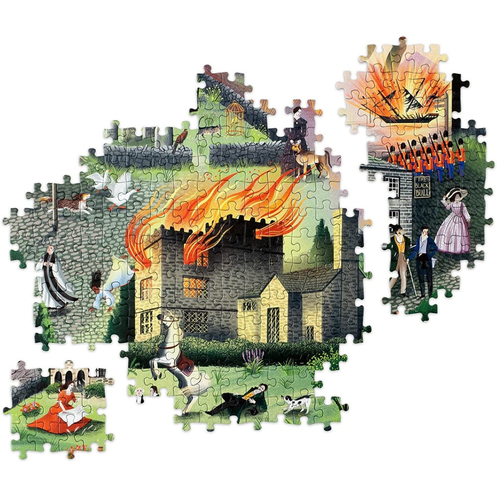 Enter the world of the Brontës with this 1000-piece jigsaw puzzle. Travel across the blustery Yorkshire moors and into the dark, gloomy schoolrooms and weathered stone buildings of nineteenth-century England to spot Cathy and Heathcliff at Wuthering Heights, Jane and Mr Rochester getting married, and a host of other fictional and real-life characters while you build the puzzle. Includes a fold-out poster that highlights characters, locations and key moments.